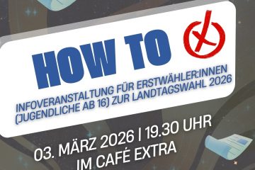 Wir laden alle Erstwähler (Jugendliche ab 16 Jahren) am 03.03.2026 um 19.30 Uhr ins Café EXTRA ein. Wir sorgen Für den DURCHBLICK zur Landtagswahl mit spannenden Infos rund um die Wahl und den zu wählenden Weiterlesen